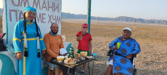 Иван продолжает свой впечатляющий забег по живописным и сложным маршрутам Тувы, демонстрируя физическую выносливость, на данный момент он сделал остановку на ночлег перед продолжением пути в с. О-Шынаа Тес-Хемского кожууна, где его встретили Председатель сумона О-Шынаа Отчугаш Танкович Уражанай и работники Администрации, также активисты Совета ветеранов нашего сумона Татьяна Туматовна Сандак и Саяна Оолаковна Дамбаа со своим сыном Айдыс.
